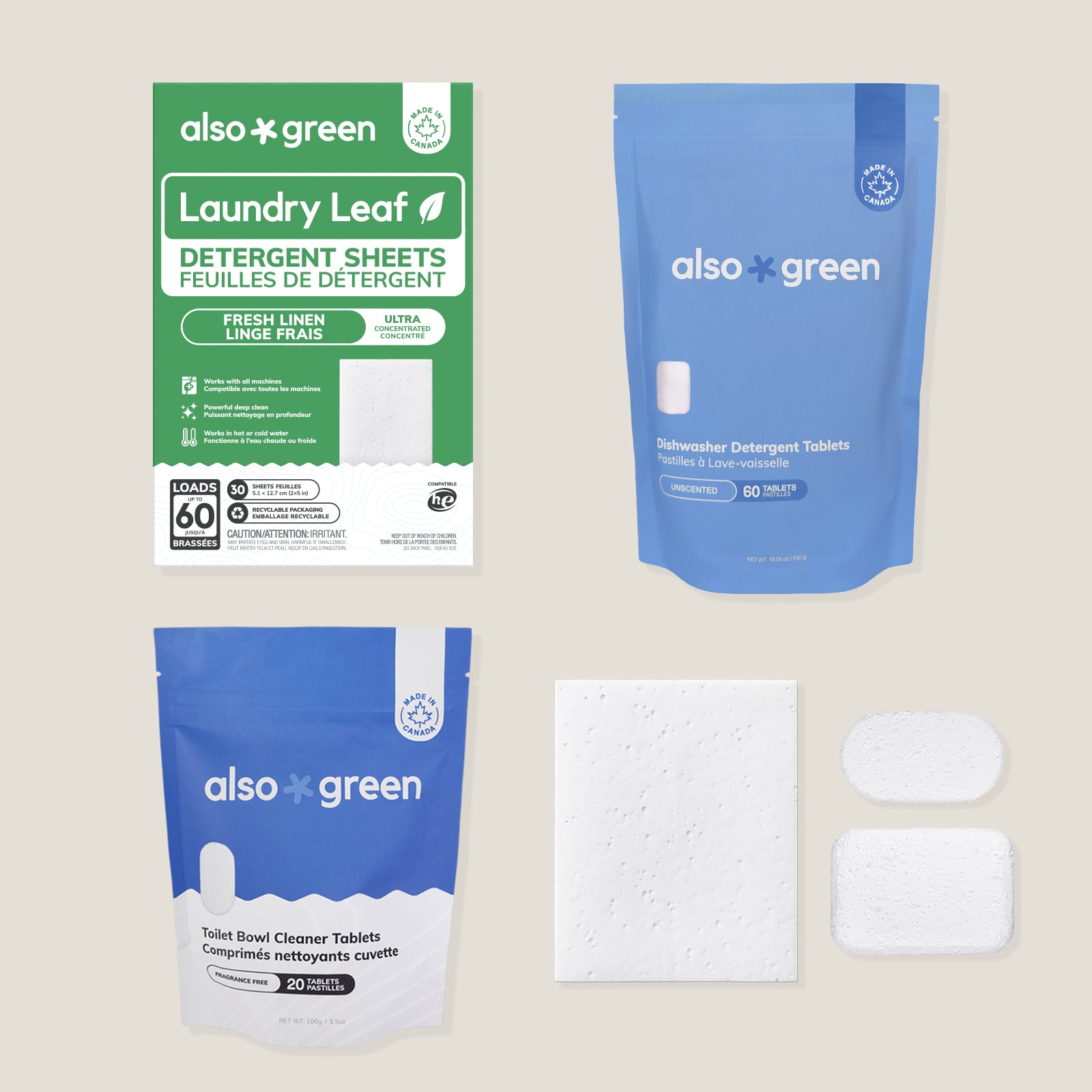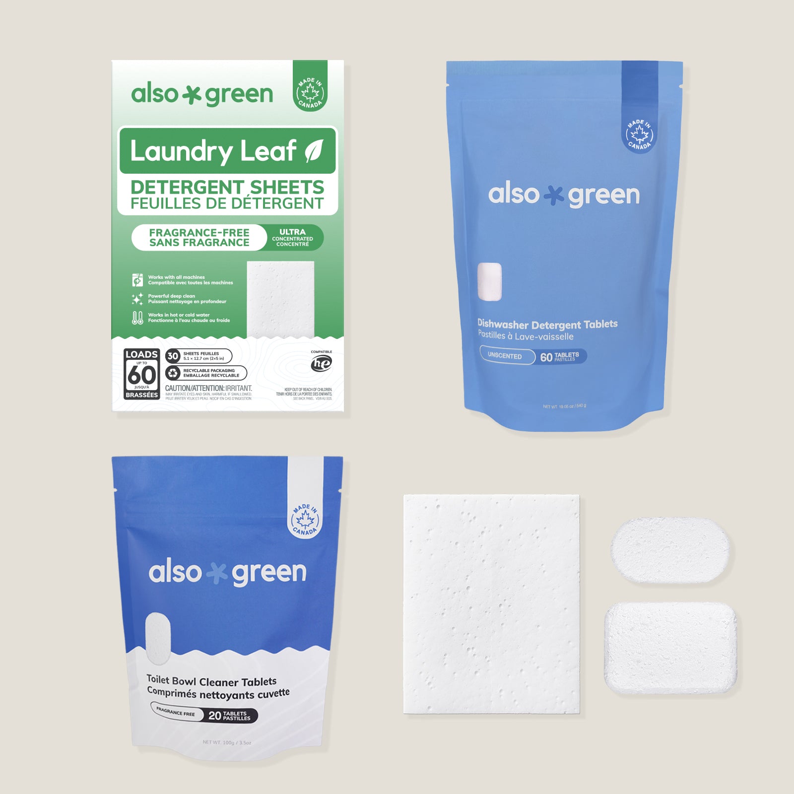 The Laundry, Dish, and Toilet Cleaner Trio delivers a complete clean for your whole home—without the waste. Simple, powerful, and made in Canada.