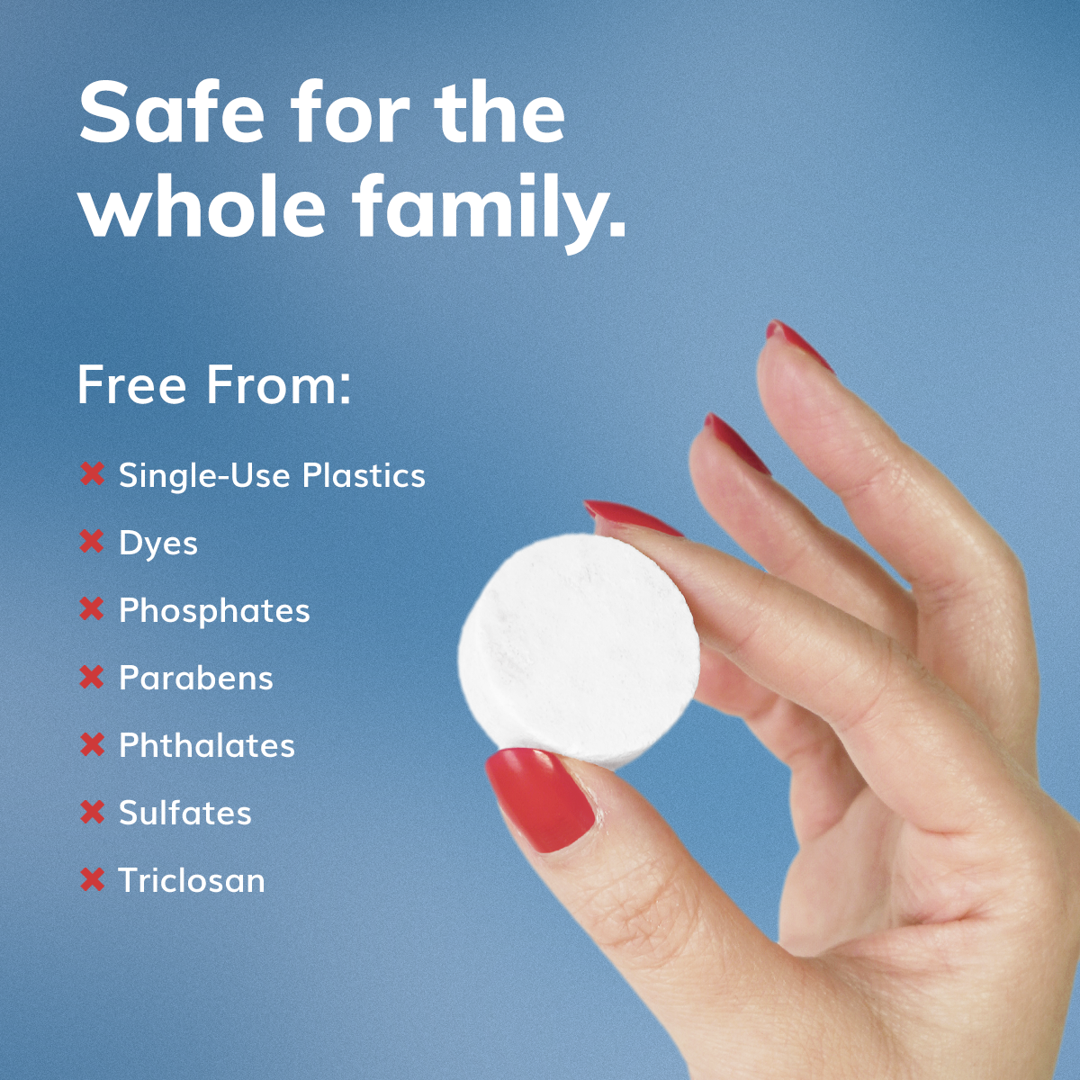 No Parabens, Phthalates, Phosphates, Ammonia, Microplastics, 1,4-Dioxane, Chlorine Bleach, Methylisothiazolinone, or Quaternary Ammonium Compounds.